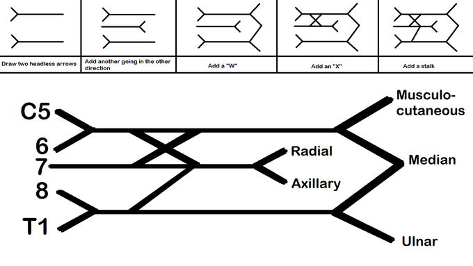 / Brachial Plexus Drawing : How To Draw The Brachial Plexus In 7 6 Seconds Flat : Notice 5 roots, 3 trunks, 6 divisions, 3 cords and 5 terminal branches.